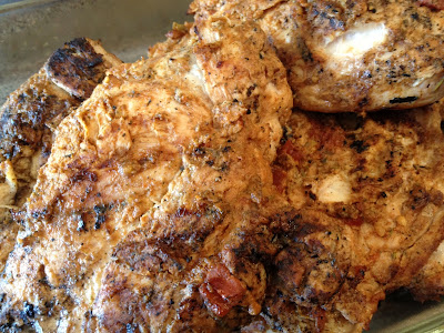 Chicken needs to get to an internal temperature of 165F. Our meat thermometer said chicken should be 180F. Either way, it was perfectly done. Juicy. Full of big flavor and zest.