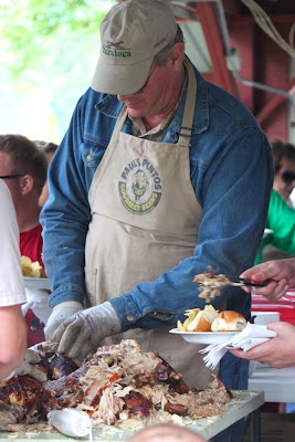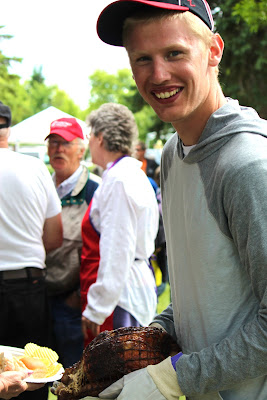 There are many volunteers that make the event a success, including Mother Nature making the weather beautifully annually on the third Saturday every June. My grandpa for the past 52 years of the turkey barbecue has been helping roast the turkeys.