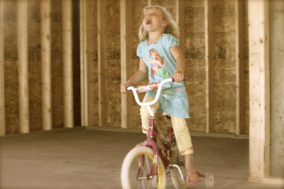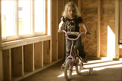 At home, the girls have found riding bike inside the little unfinished cabin on the prairie is great entertainment. With the winds of change blowing through the prairie, the training wheels are coming off for Miss E this weekend. She already knows she can ride without them. One thing about Miss E, she does not lack perseverance.