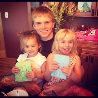 More first moments…homemade cards from the little sisters for the now 15 year old big brother and…