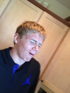 I asked Hunter to bring cherry tomatoes in his lunch. He tried one and this was his reaction. |