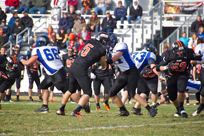 Our son can see his last football game of the season, today. The team lost in the first round of the playoffs. Hunter, our son is number 44, front and center.