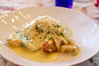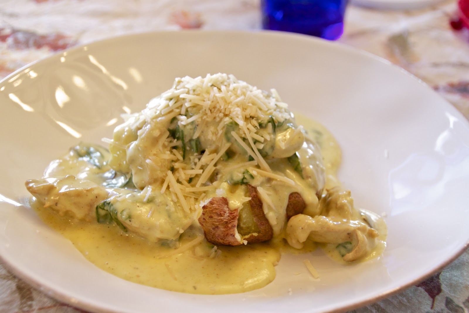 Creamed Pheasant & Spinach over Baked Potatoes |
