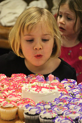 We had cupcakes for all which were made at a peanut free bakery in Bismarck. We always have peanut free parties for a friend with a severe and life threatening allergy. The kids never notice the parties are peanut free and all parents rest easy.
