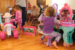 Two other traditions that we followed on Christmas this year were our family Christmas “program”, directed this year by Miss A and Miss E along with my dad reading the Bible scripture of Jesus birth from Luke. |