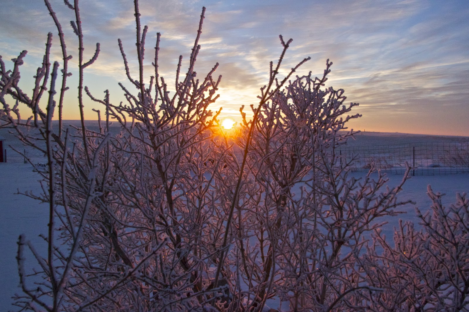 I love the 2nd one with the sun peaking through the frost on the plants!